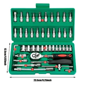 46pc Drive Socket Set 1/4 inch Ratchet Wrench Set with Sockets Metric Hex Bit Socket Set Mechanic Tool Kits for Auto Repair Hous quantity